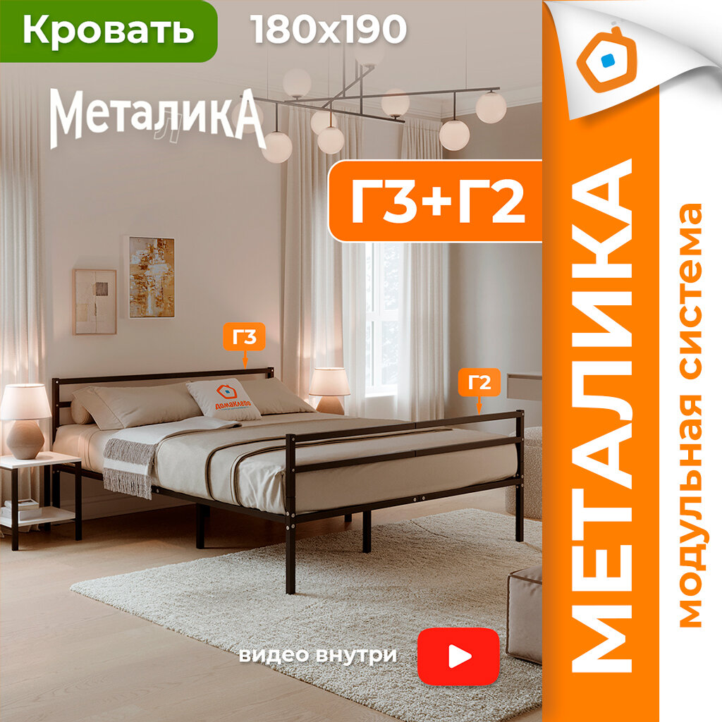Отзывы на Кровать металлическая Металика Г3+Г2 180х190 черная с держателями для матраса и доп. опорами