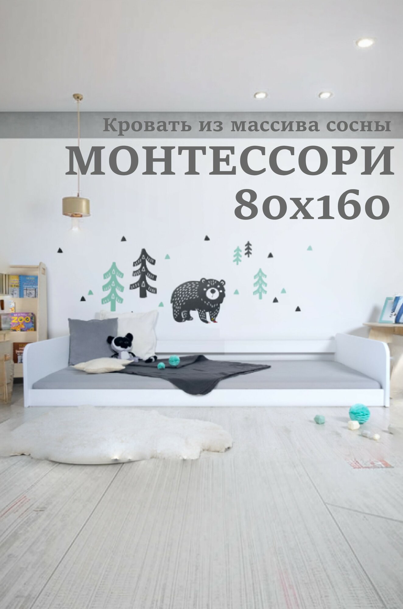 10 цен на Кровать Максим монтессори безопасная низкая, 80*160 см, белая