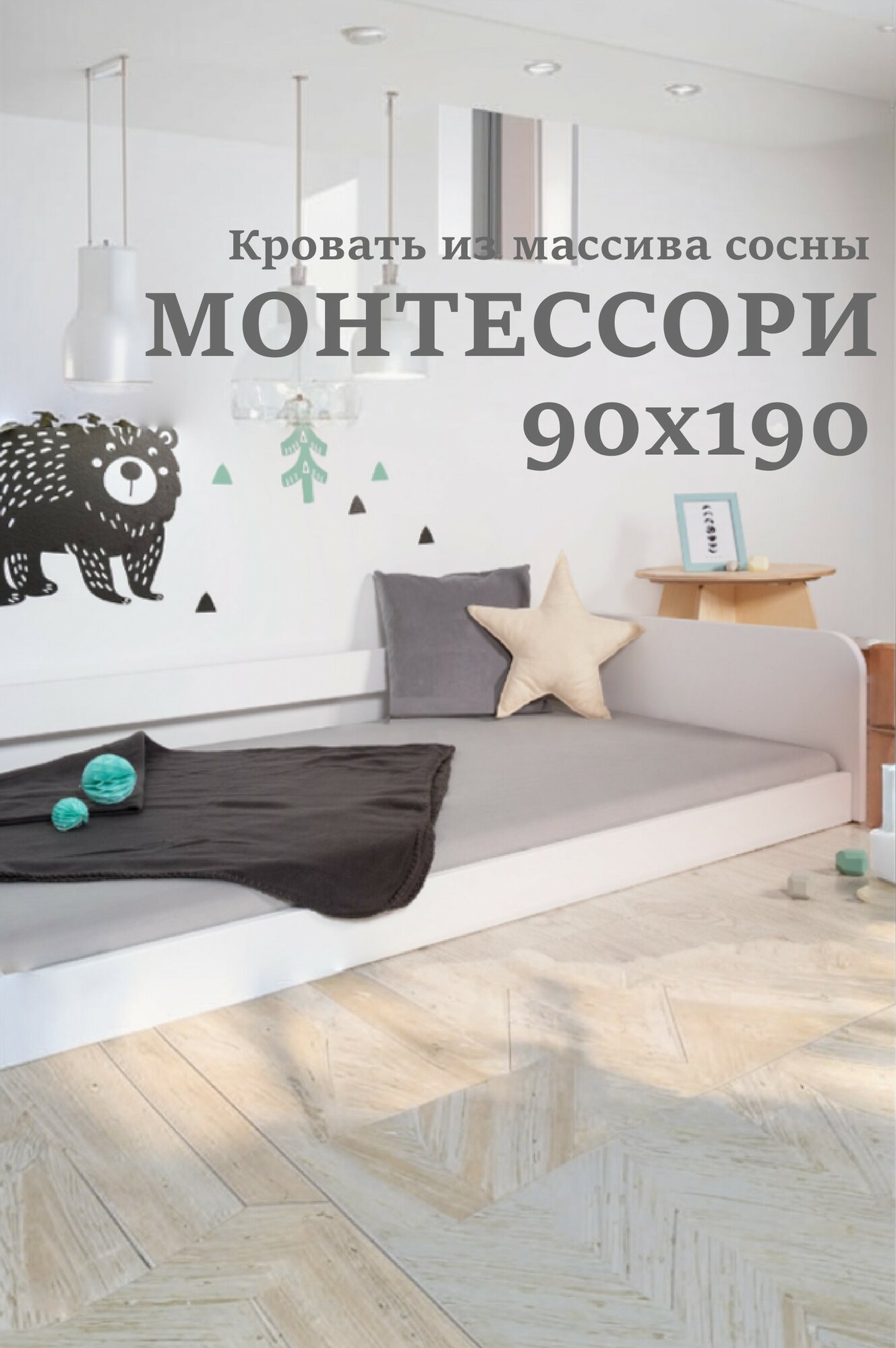 Кровать монтессори Максим безопасная низкая из массива сосны, 90*190, белая информация: