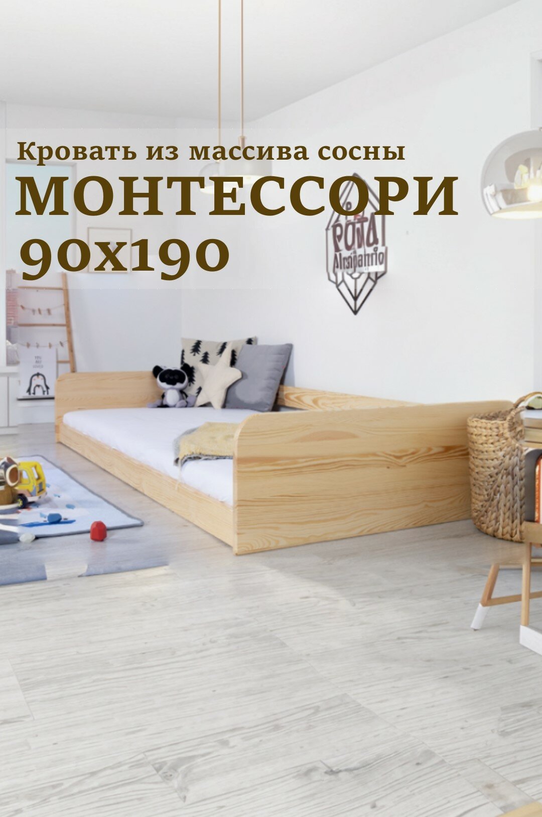 Кровать монтессори Максим низкая, безопасная, натуральное дерево, 90*190, цвет лак информация: