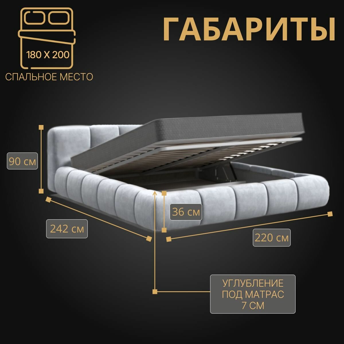 Двуспальная кровать гермес 180х200 с подъемным механизмом и ящиком для белья информация: