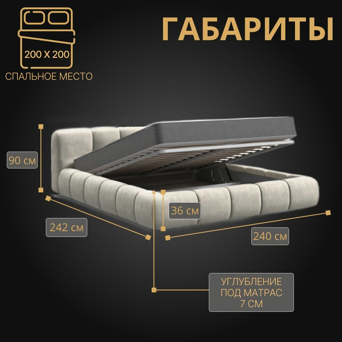 Отзывы на Двуспальная кровать гермес 200х200 с подъемным механизмом и ящиком для белья