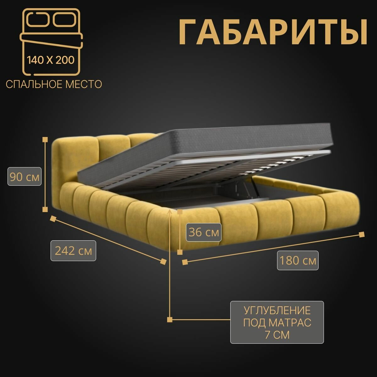 Двуспальная кровать гермес 140х200 с подъемным механизмом и ящиком для белья информация: