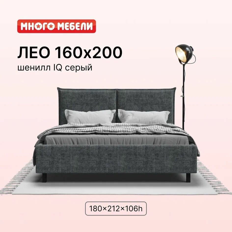 Отзывы на Двуспальная кровать ЛЕО, вельвет Шенилл IQ цвет серый, 160х200 см