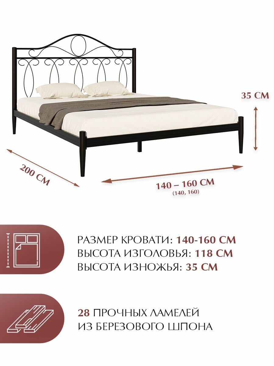 10 цен на Двуспальная кровать элегия, металлическая, железная, кованая, черная, 160х200 см