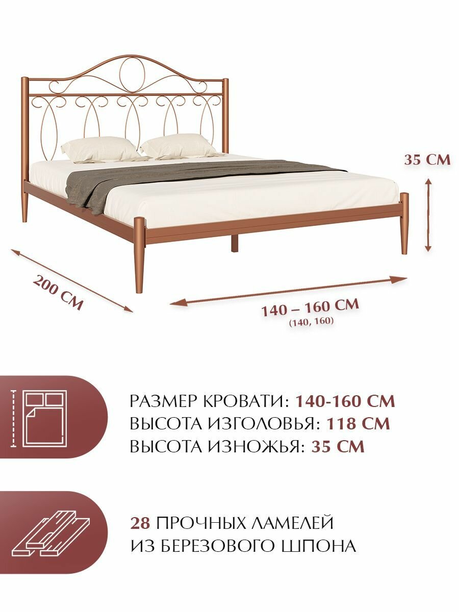 10 цен на Двуспальная кровать элегия, металлическая, железная, кованая, бронзовая, 160х200 см