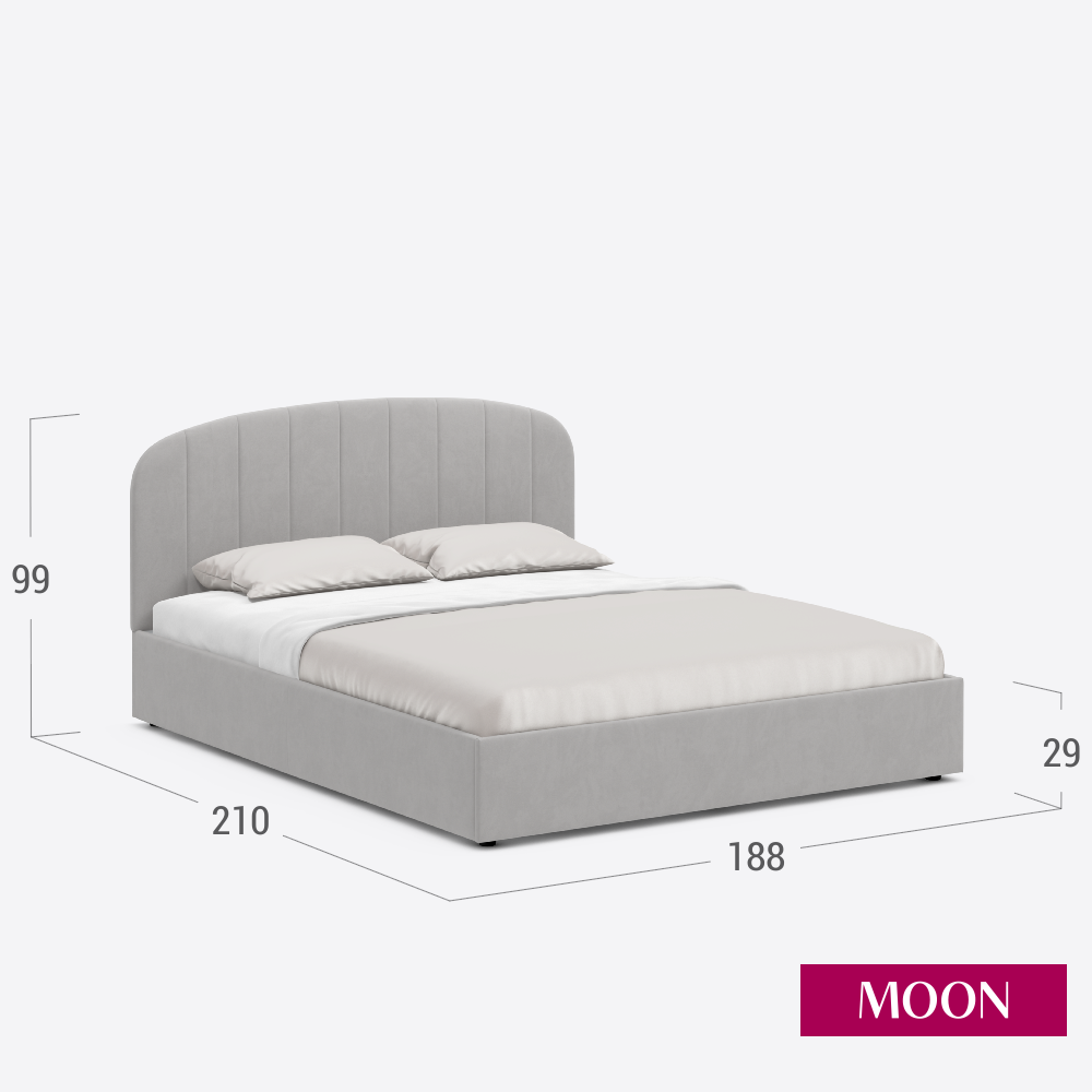 Кровать двуспальная без подъемного механизма, MOON FAMILY 1262, размер 180х200 см, велюр светло-серый. Ортопедическое основание в комплекте информация: