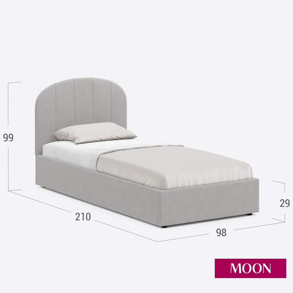 Отзывы на Кровать односпальная без подъемного механизма, MOON FAMILY 1262, размер 90х200 см, велюр светло-серый. Ортопедическое основание в комплекте