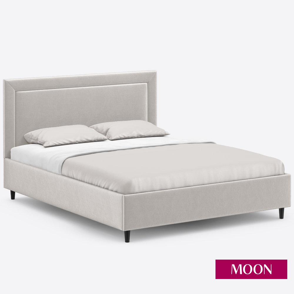 10 цен на Кровать двуспальная без подъемного механизма на ножках, MOON FAMILY 1258, размер 180х200 см, велюр светло-серый. Ортопедическое основание в комплекте