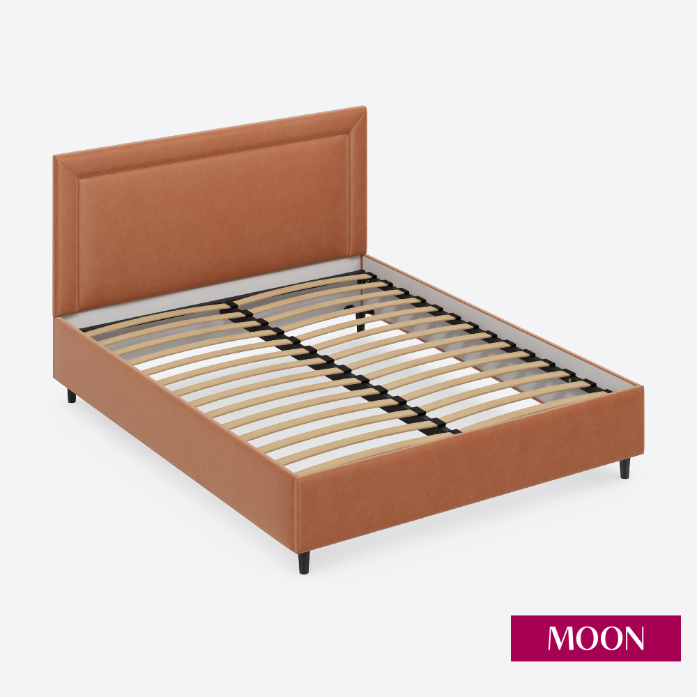 Кровать двуспальная без подъемного механизма на ножках, MOON FAMILY 1258, размер 140х200 см, велюр оранжевый. Ортопедическое основание в комплекте информация: