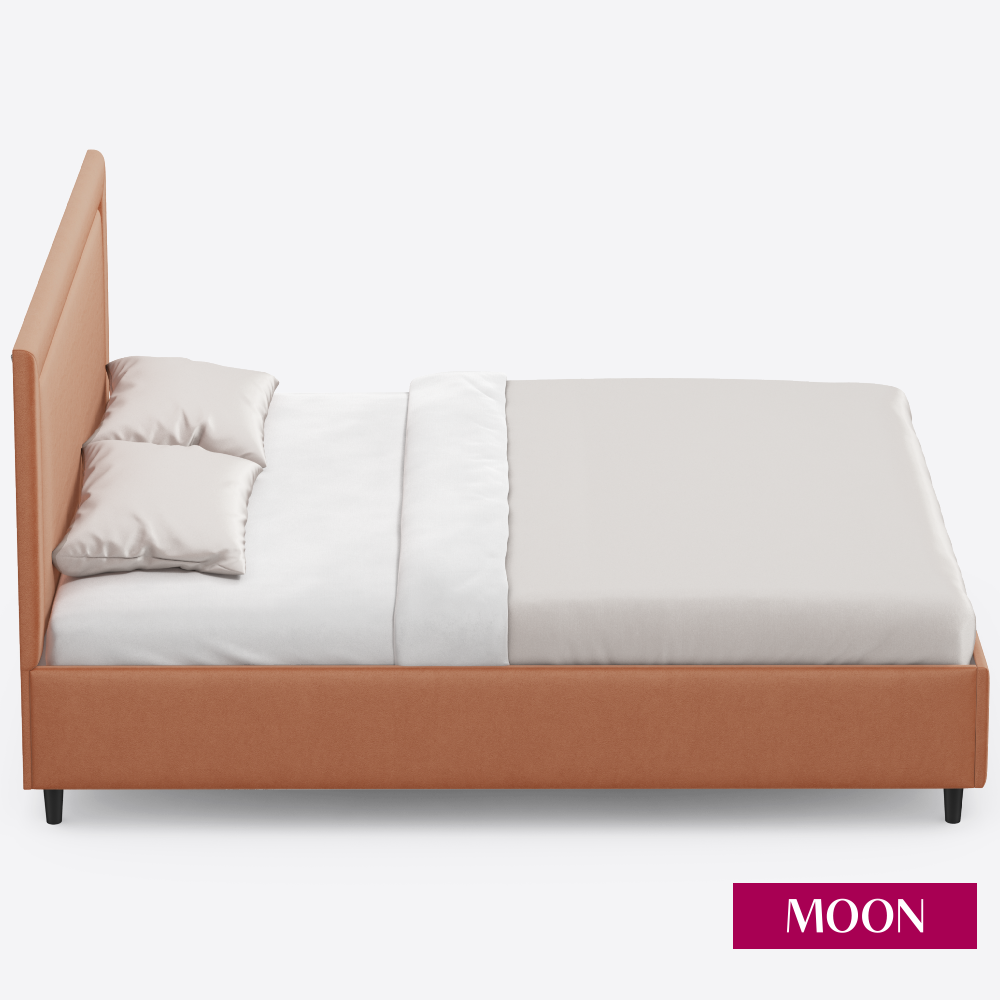 Кровать двуспальная без подъемного механизма на ножках, MOON FAMILY 1258, размер 180х200 см, велюр оранжевый. Ортопедическое основание в комплекте информация: