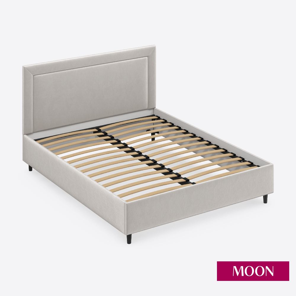 Отзывы на Кровать двуспальная без подъемного механизма на ножках, MOON FAMILY 1258, размер 140х200 см, велюр светло-серый. Ортопедическое основание в комплекте