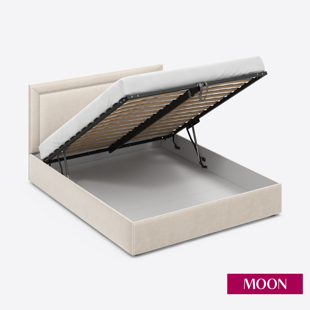 10 цен на Кровать двуспальная с подъемным механизмом, MOON FAMILY 1258, размер 140х200 см, велюр бежевый. Ортопедическое основание в комплекте
