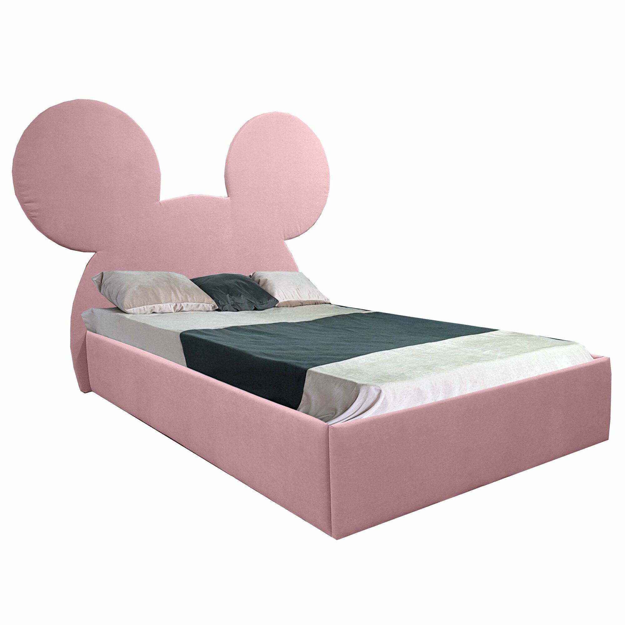 10 цен на Односпальная кровать Микки 90x200 с подъемным механизмом и с коробом для белья велюр розовый без ножек