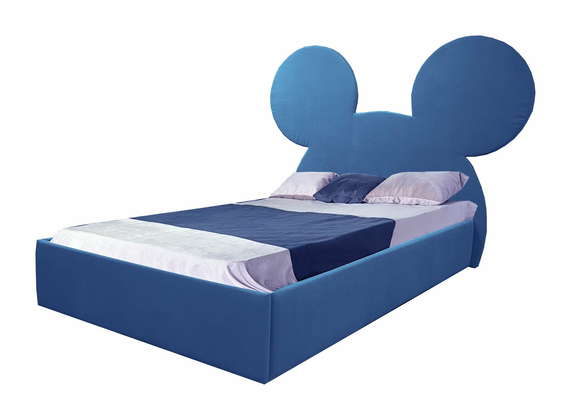 10 цен на Полутороспальная кровать Микки 140x200 с подъемным механизмом и с коробом для белья велюр синий без ножек