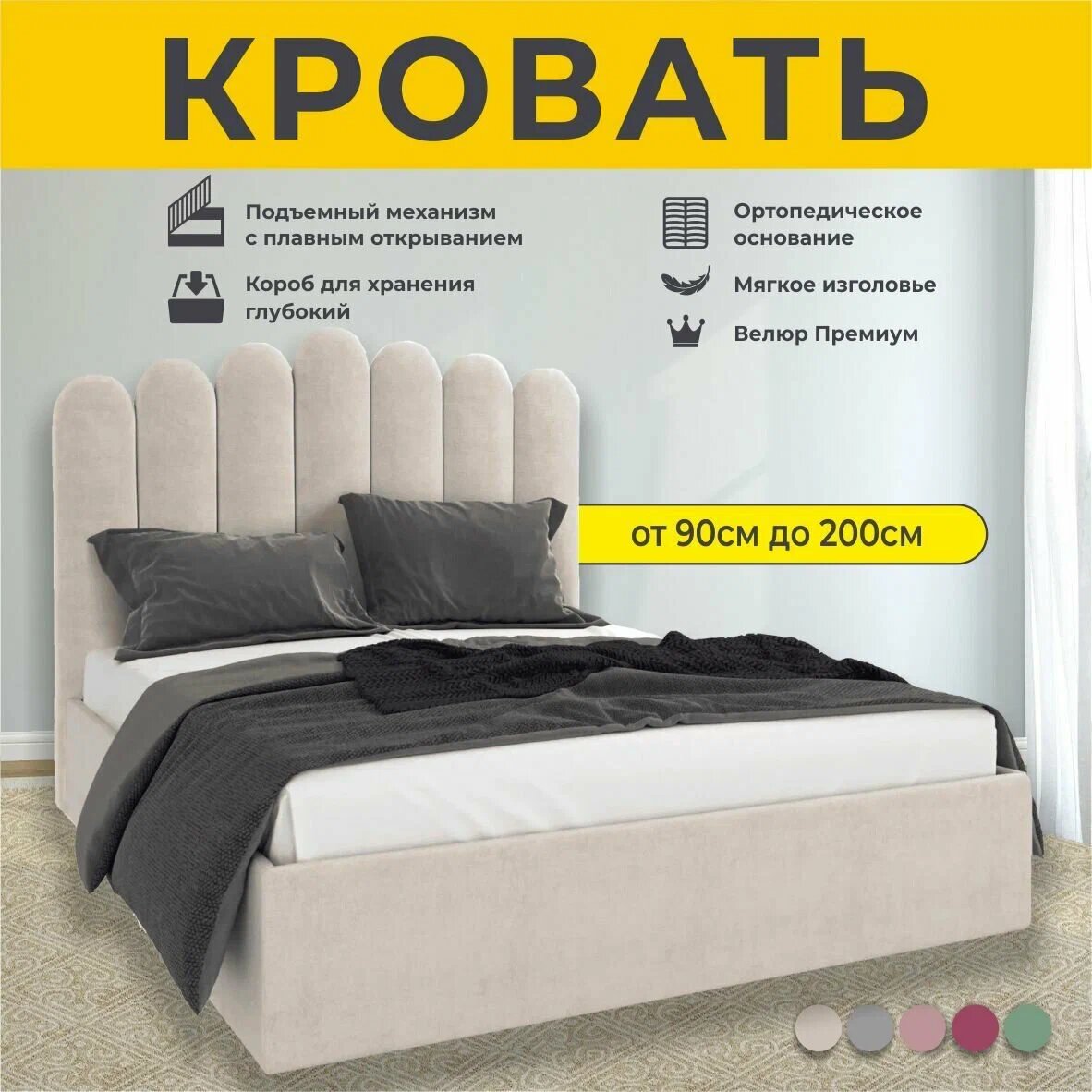 Кровать двуспальная 140Х200 см MILA ортопедическая, подъемный механизм, ящики для белья, Бежевый 33 500 ₽