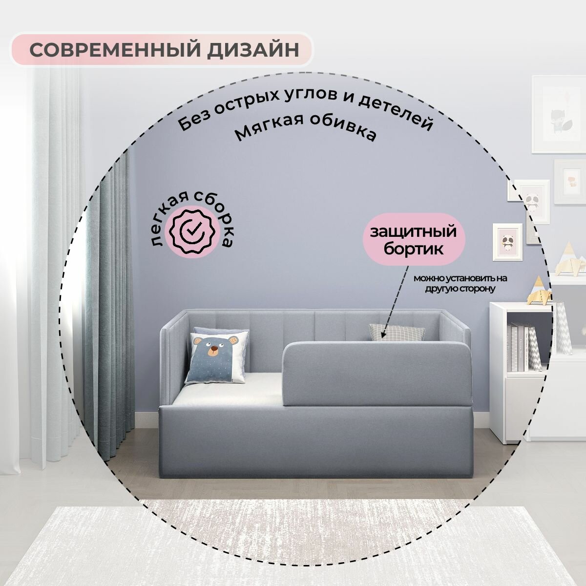 Мягкая кровать детская Софт с бортом тедди 316 информация: