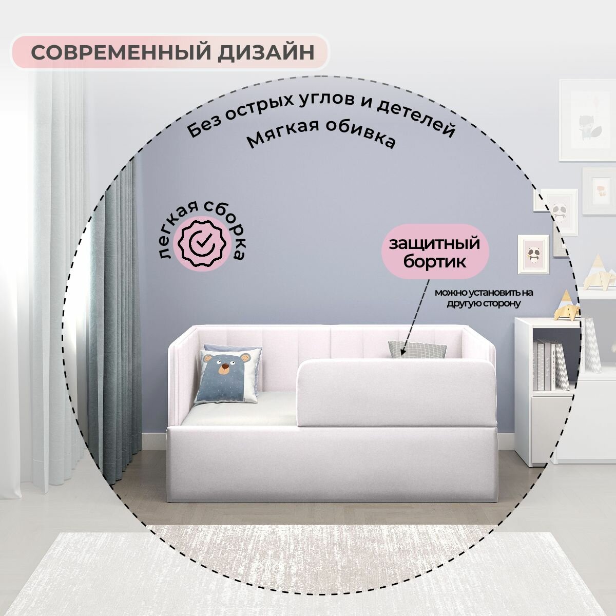 Мягкая кровать детская Софт с бортом тедди 001 информация: