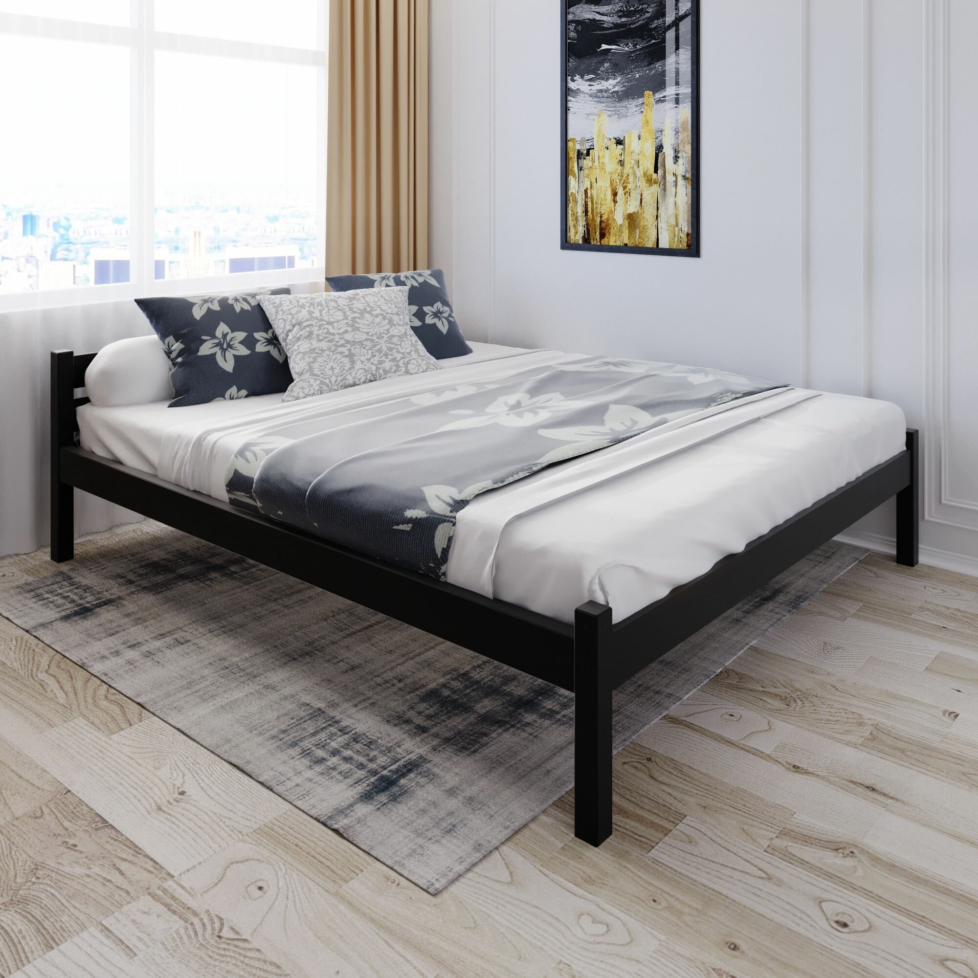 Отзывы на Кровать двуспальная Классика из массива сосны со сплошным основанием, 200х160 см (габариты 210х170), цвет черного оникса