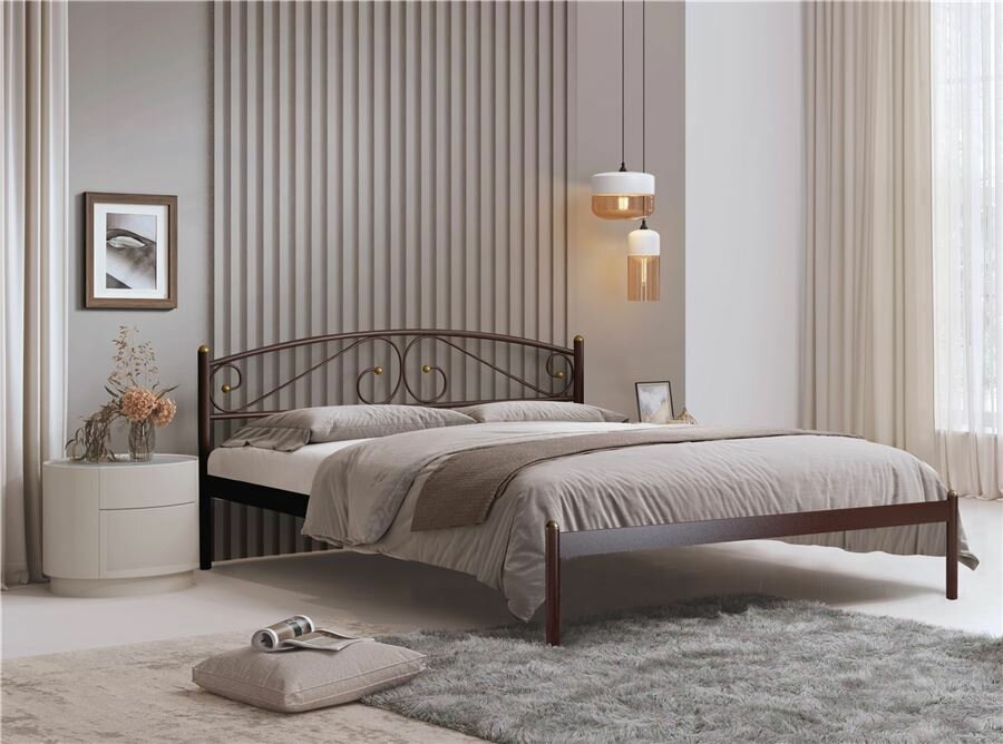 Кровать двуспальная Флоренция 140х200 см, металлическая, с основанием, цвет коричневый бархат информация: