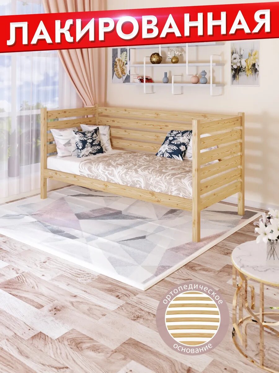 Отзывы на Тахта односпальная из массива сосны с ортопедическим основанием и высокими бортиками, 80х160 см (габариты 90х170), лакированная