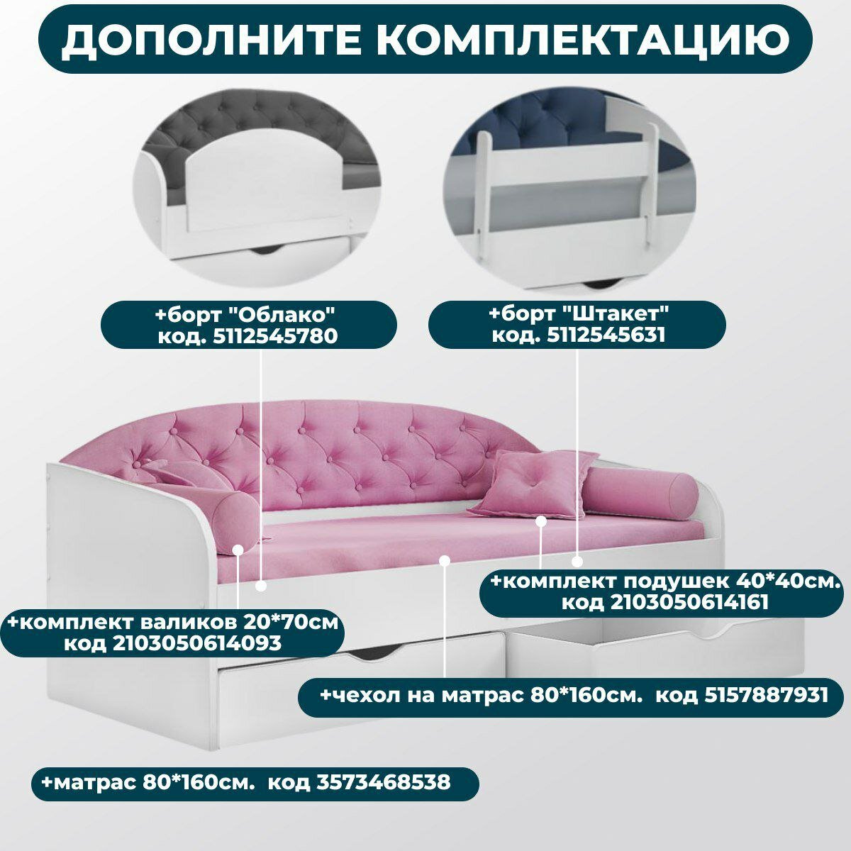 Matrix диван- кровать с мягкой спинкой Sofa 9, 80x160 см, цвет дуб белый с розовым 16 400 ₽