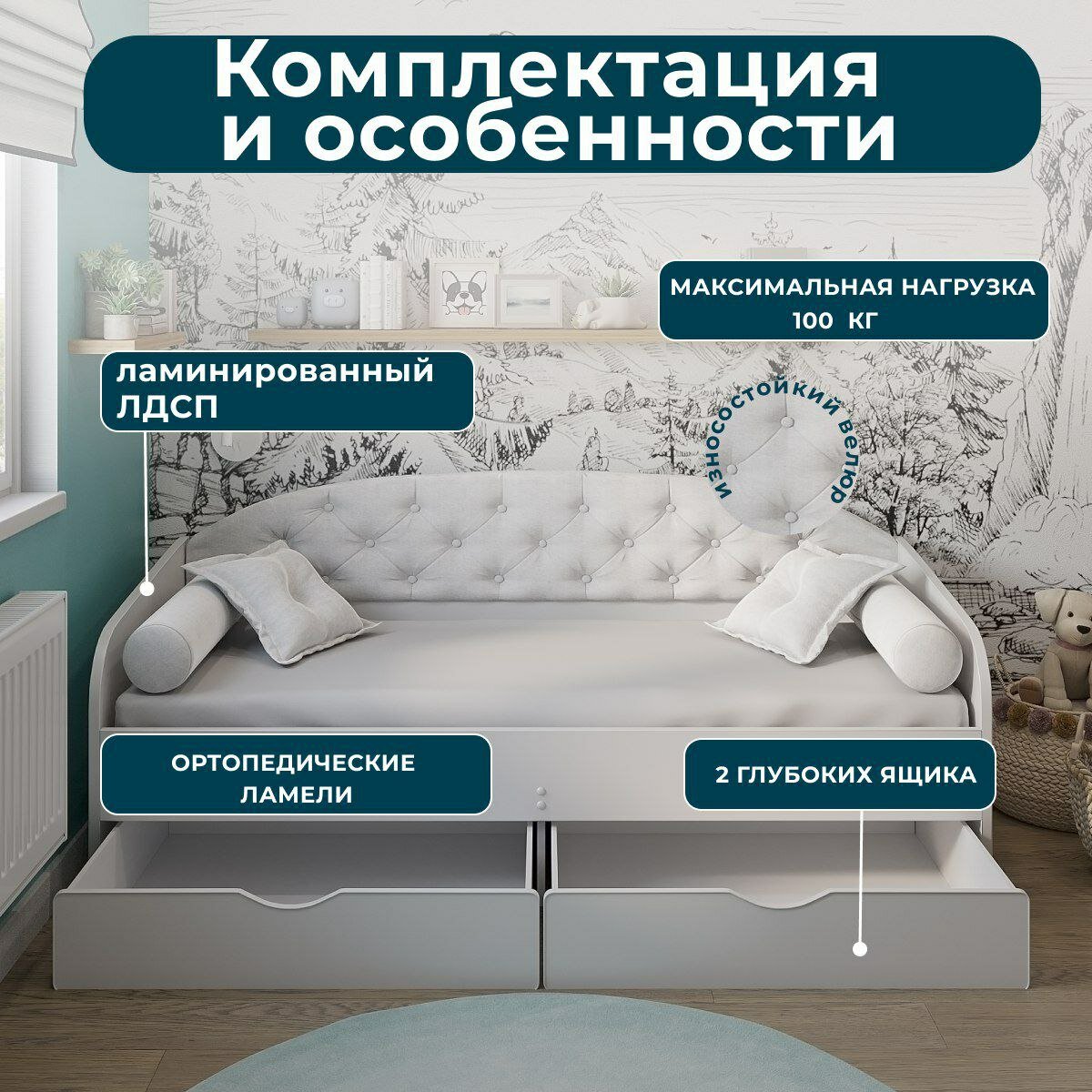 Мягкий диван кровать детская/ подростковая софа с подъемным механизмом асти 90х200 правая