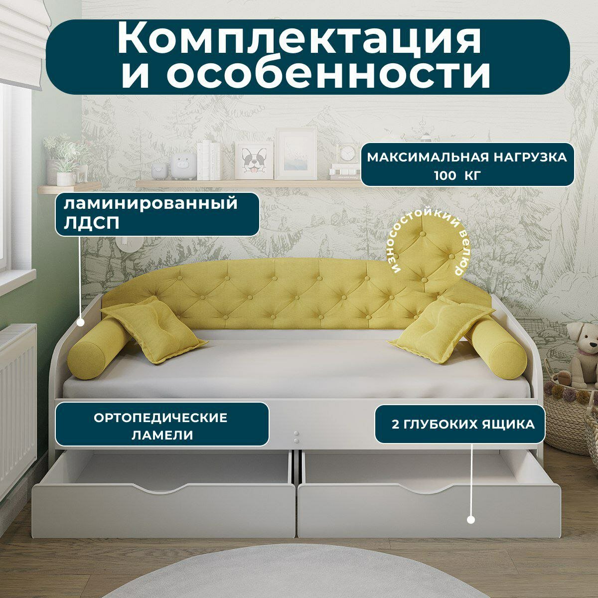 Matrix кровать с мягкой спинкой Sofa 9, 160x80 см, цвет желтый информация: