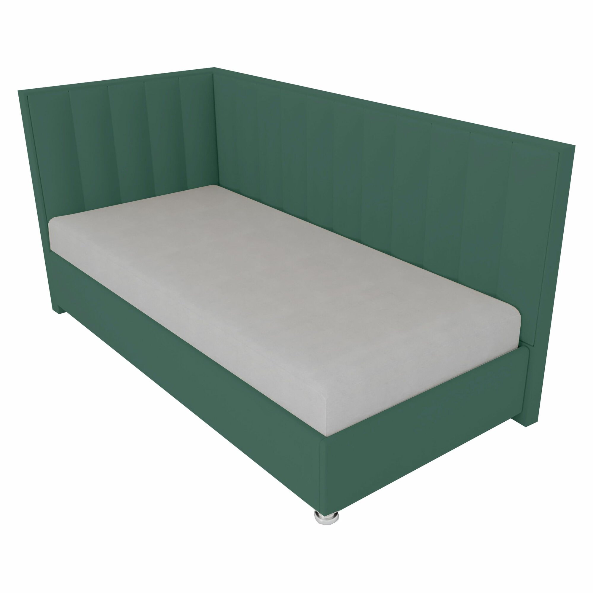 10 цен на Односпальная кровать Сочи 80x200 с подъемным механизмом и с коробом для белья велюр зеленый ножки 13 см хром угол правый