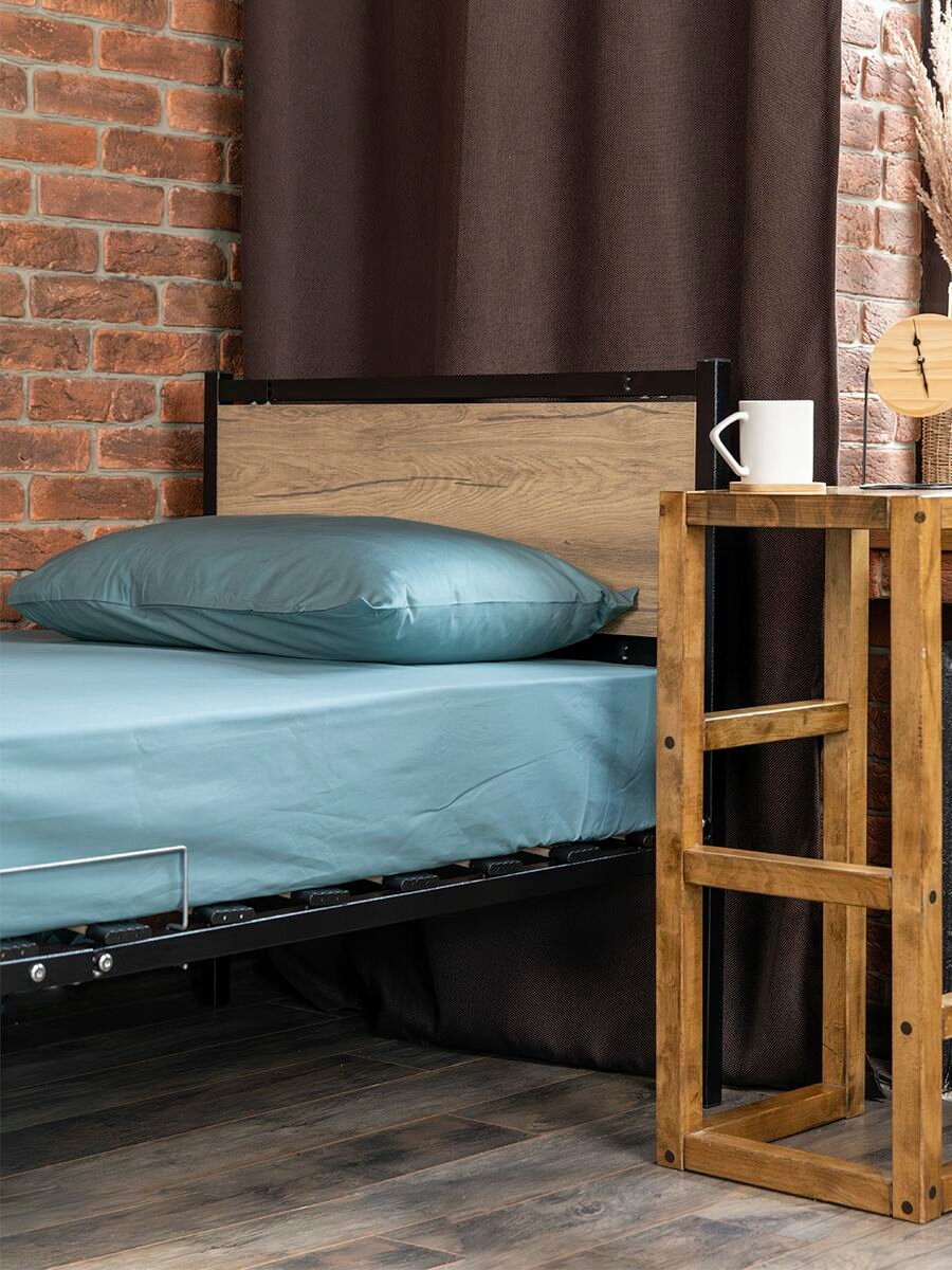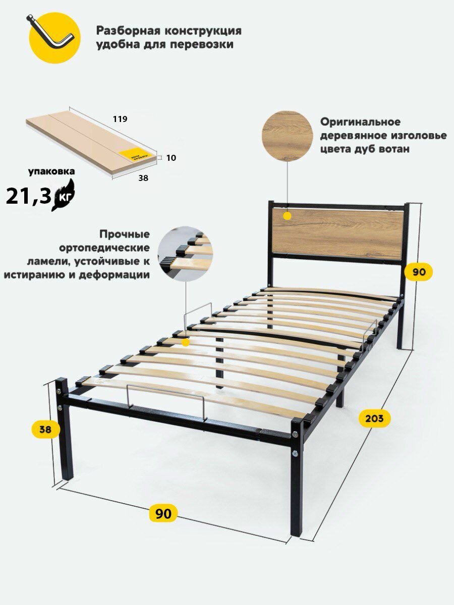 10 цен на Кровать односпальная 90х200 кумбия, металлическая с ортопедическим основанием, изголовье цвета Дуб Вотан