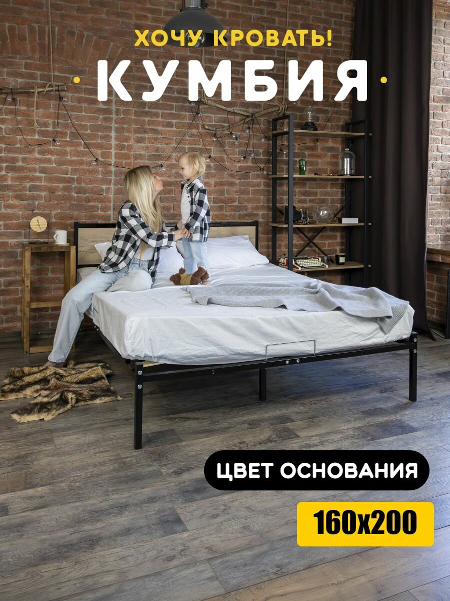Отзывы на Кровать двуспальная 160х200 кумбия, металлическая с ортопедическим основанием, изголовье цвета Дуб Вотан