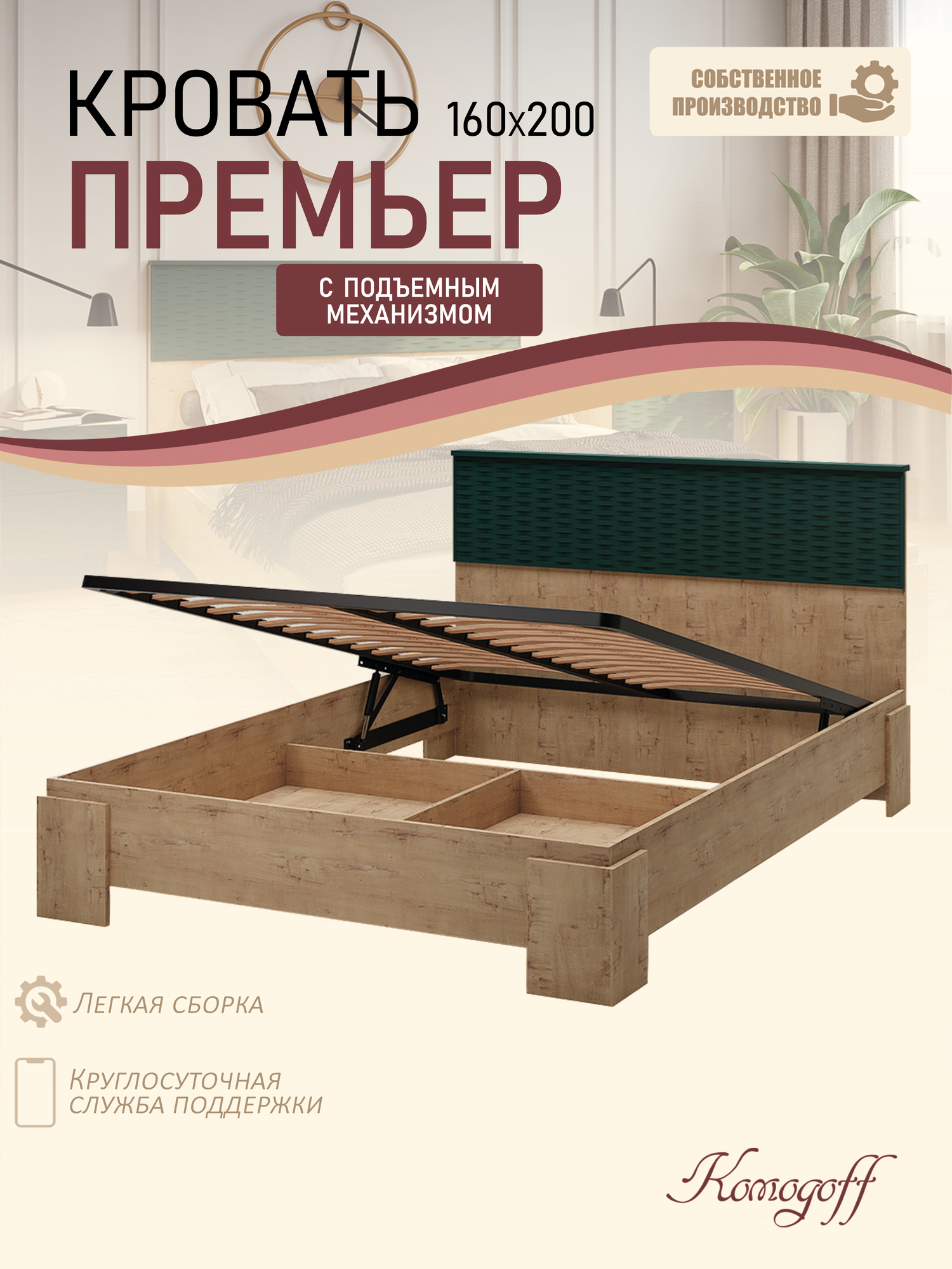 Кровать 160х200 двуспальная с подъёмным механизмом Komodoff Премьер, ортопедическое основание на металлокаркасе информация: