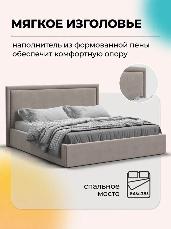 Отзывы на Двуспальная кровать Фрея без подъемного механизма, велюр MONOLIT Латте, 160х200 см