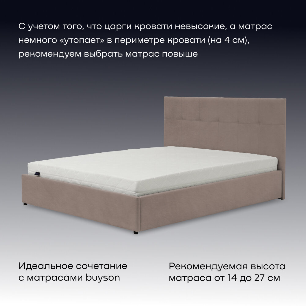 Двуспальная кровать buyson BuyDream 180х200 см, с подъемным механизмом, капучино, микровелюр информация: