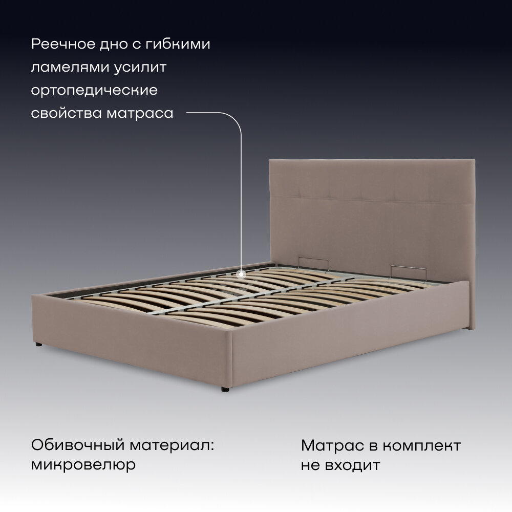 Двуспальная кровать buyson BuyDream 160х200 см, с подъемным механизмом, капучино, микровелюр 32 590 ₽