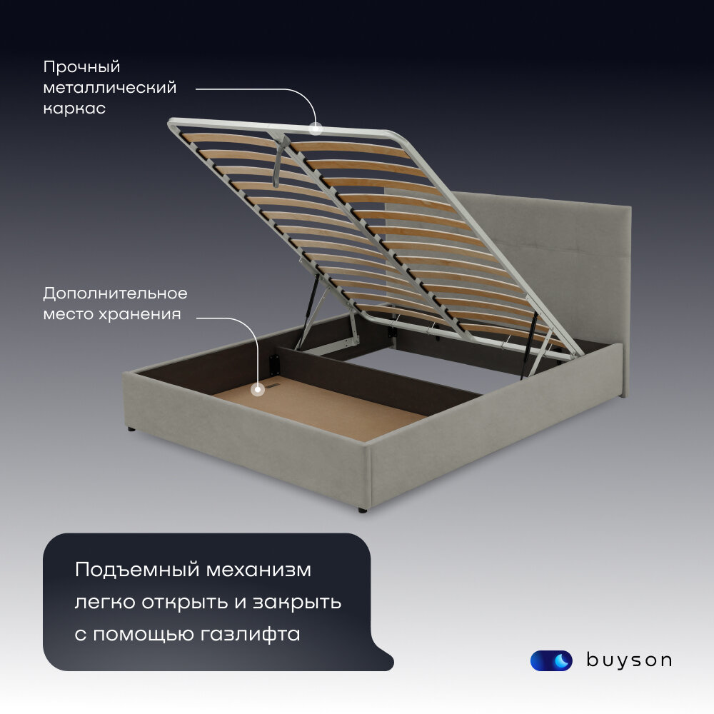 Двуспальная кровать buyson BuyDream 180х200 см, с подъемным механизмом, светло-серый, микровелюр информация:
