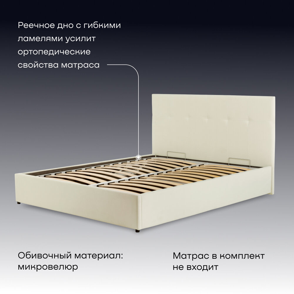 Двуспальная кровать buyson BuyDream 180х200 см, с подъемным механизмом, микровелюр, слоновая кость информация: