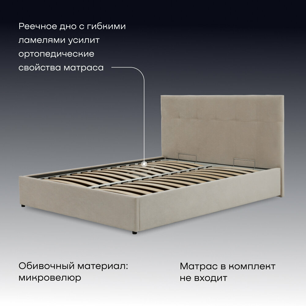 Двуспальная кровать buyson BuyDream 200х160 с подъемным механизмом, бежевая микровелюр информация: