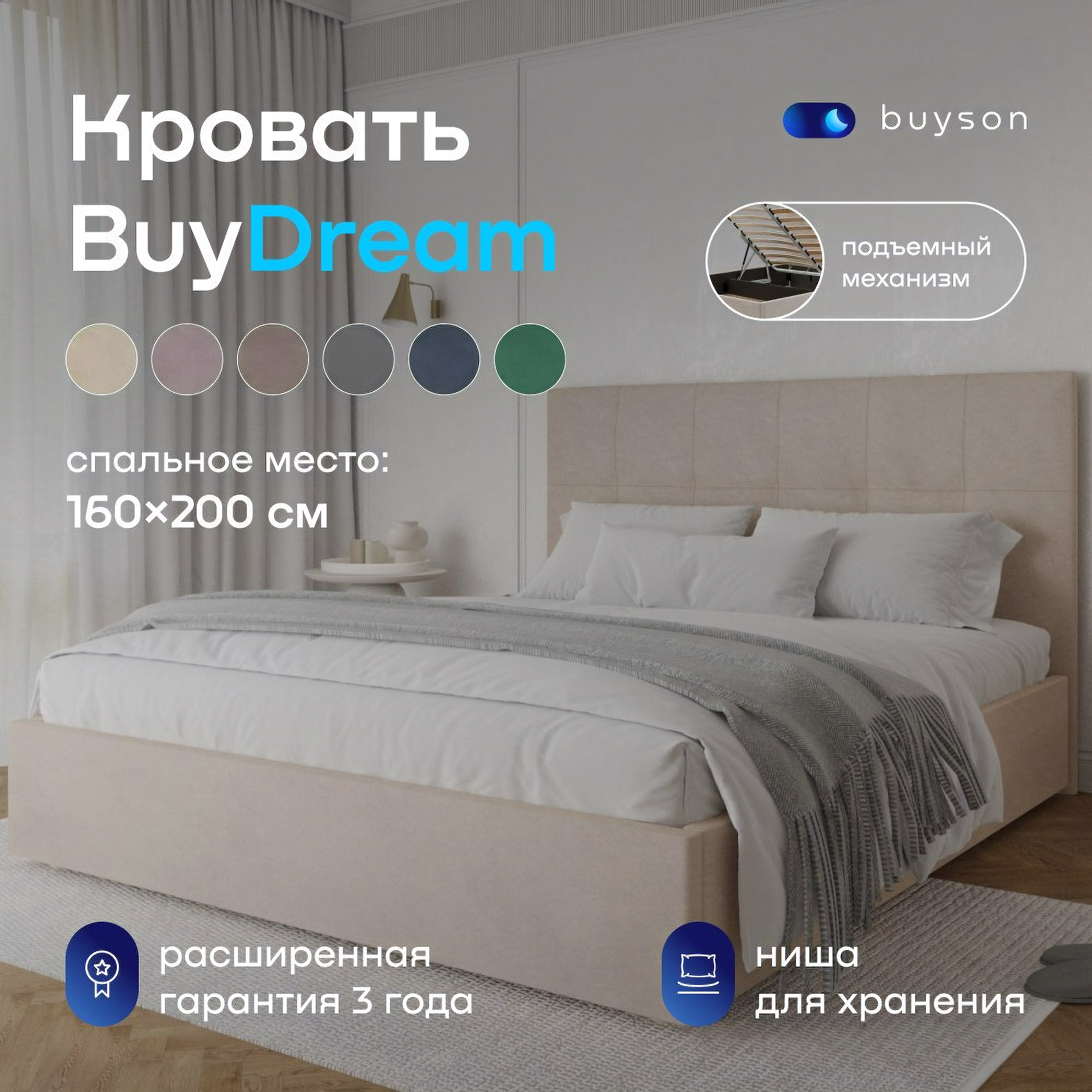 Отзывы на Двуспальная кровать buyson BuyDream 200х160 с подъемным механизмом, бежевая микровелюр