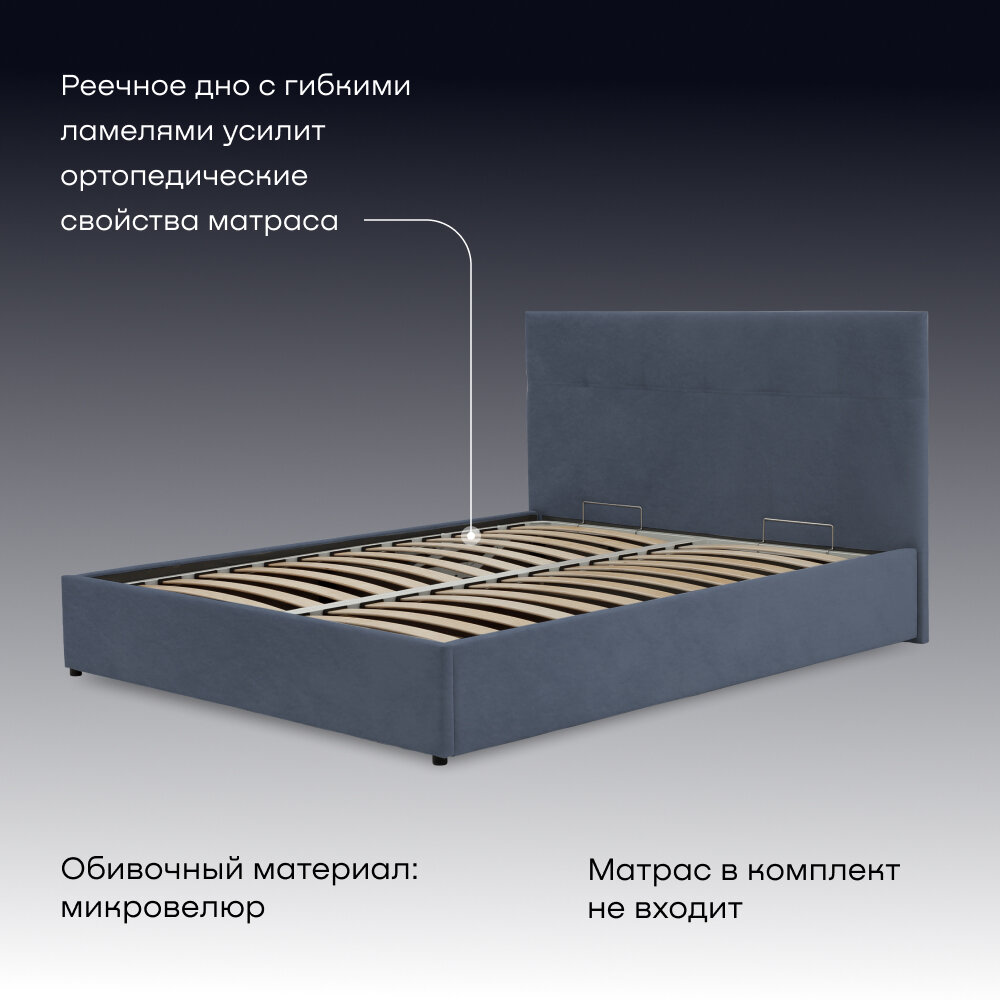 Двуспальная кровать buyson BuyDream 160х200 см, с подъемным механизмом, серо-синий, микровелюр 33 790 ₽