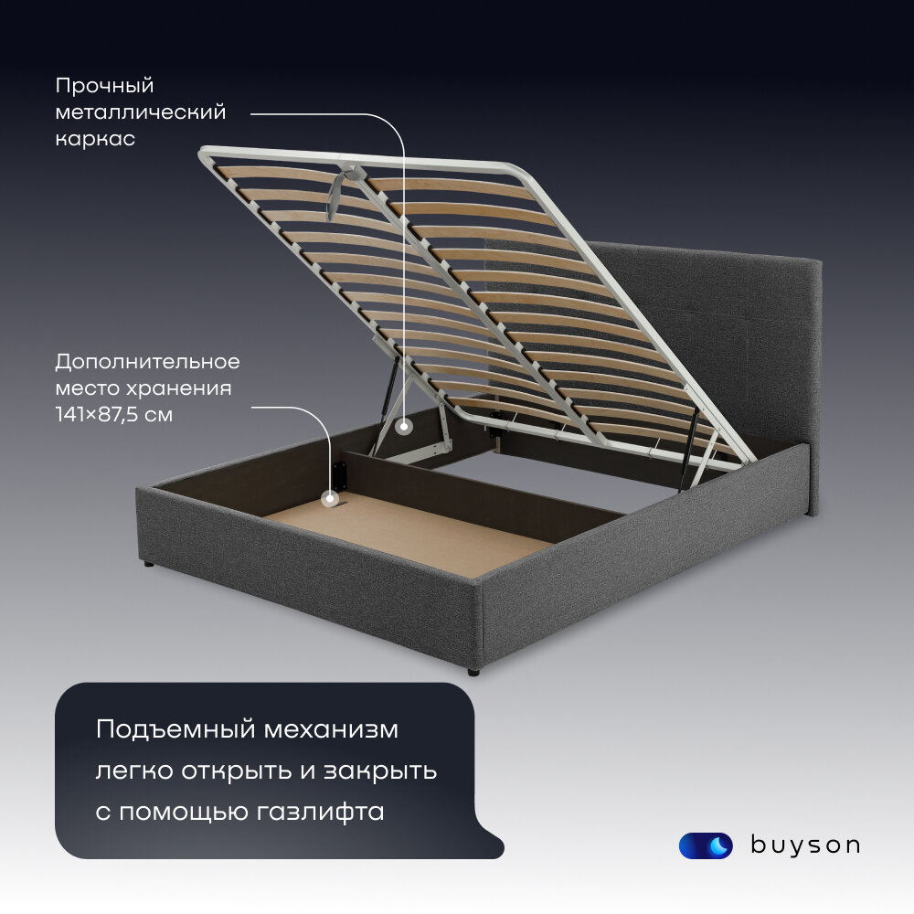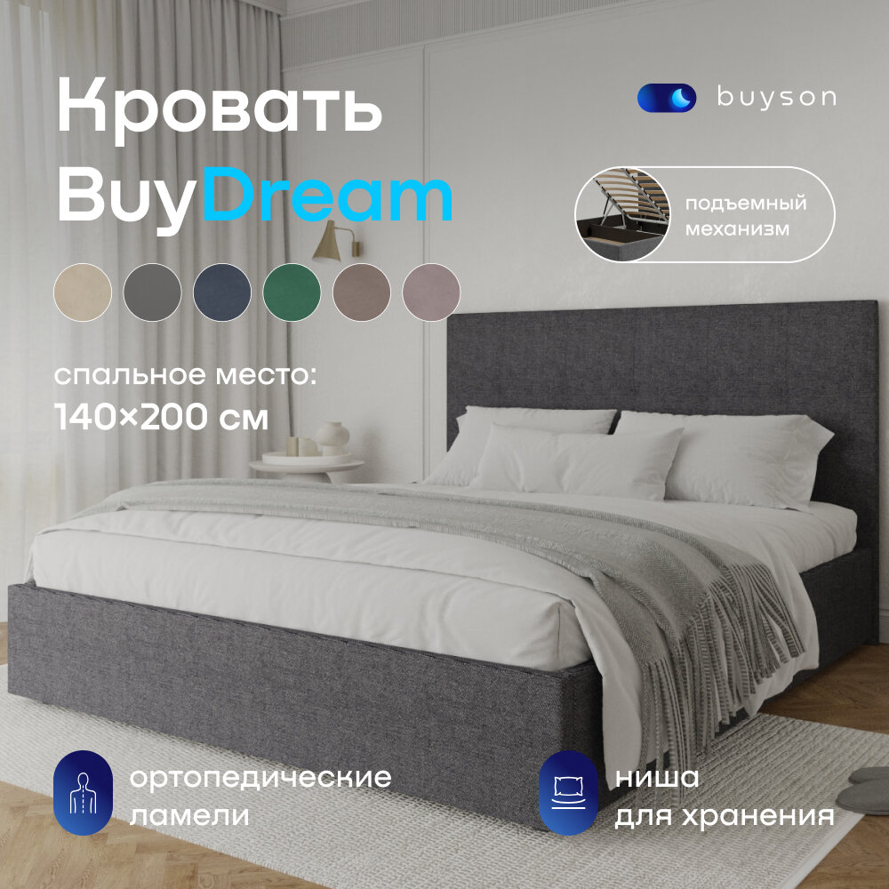 Отзывы на Двуспальная кровать buyson BuyDream 200х140 с подъемным механизмом, серая рогожка