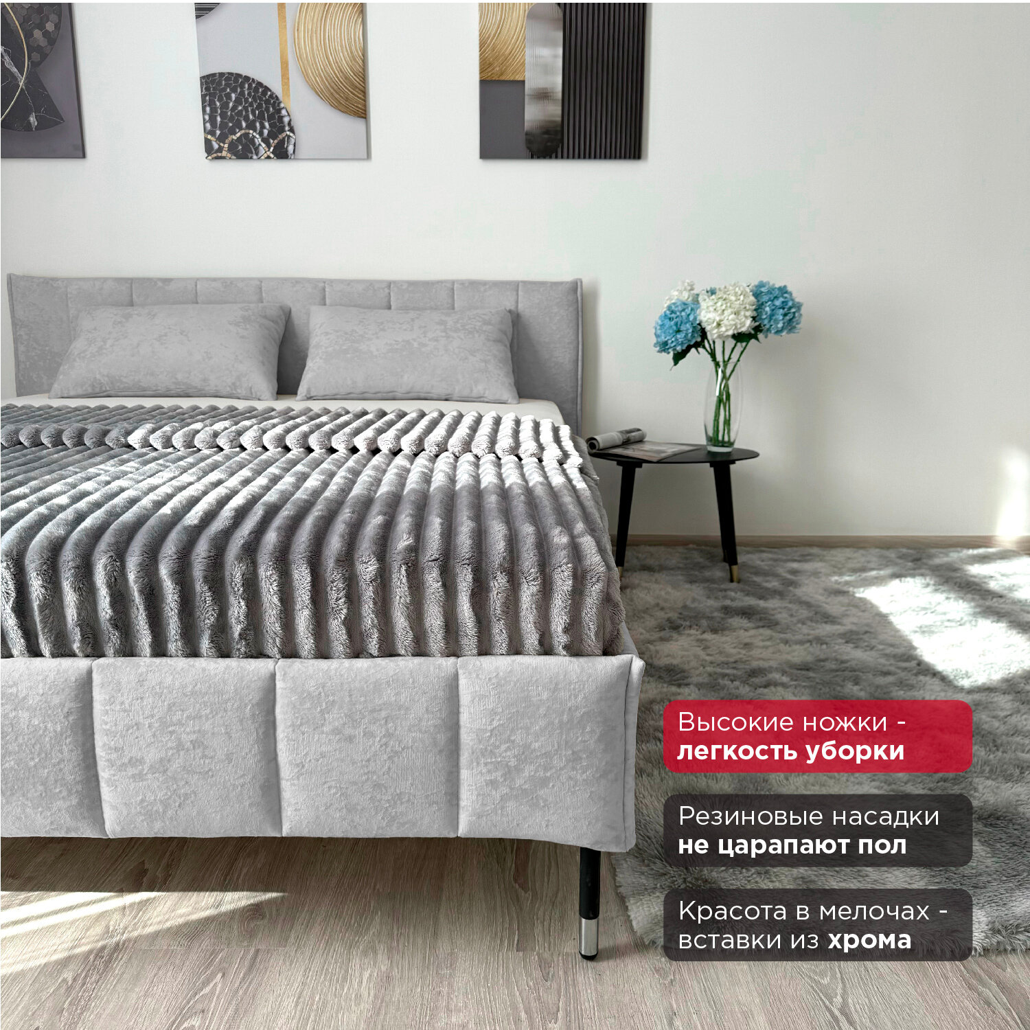 Кровать Redsofa Стелла светло-серый Teddi / ножки хром 160х200 с ортопедическим основанием 23 751 ₽