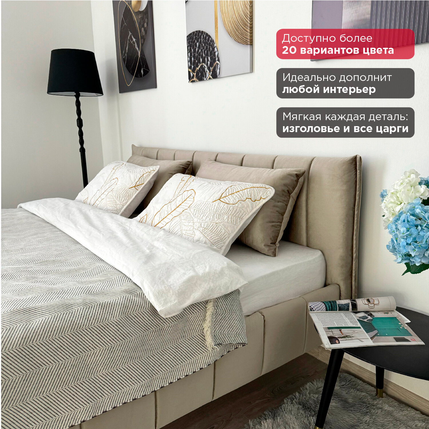 Отзывы на Кровать Redsofa Стелла бежевый Шайн / ножки хром 160х200 с ортопедическим основанием
