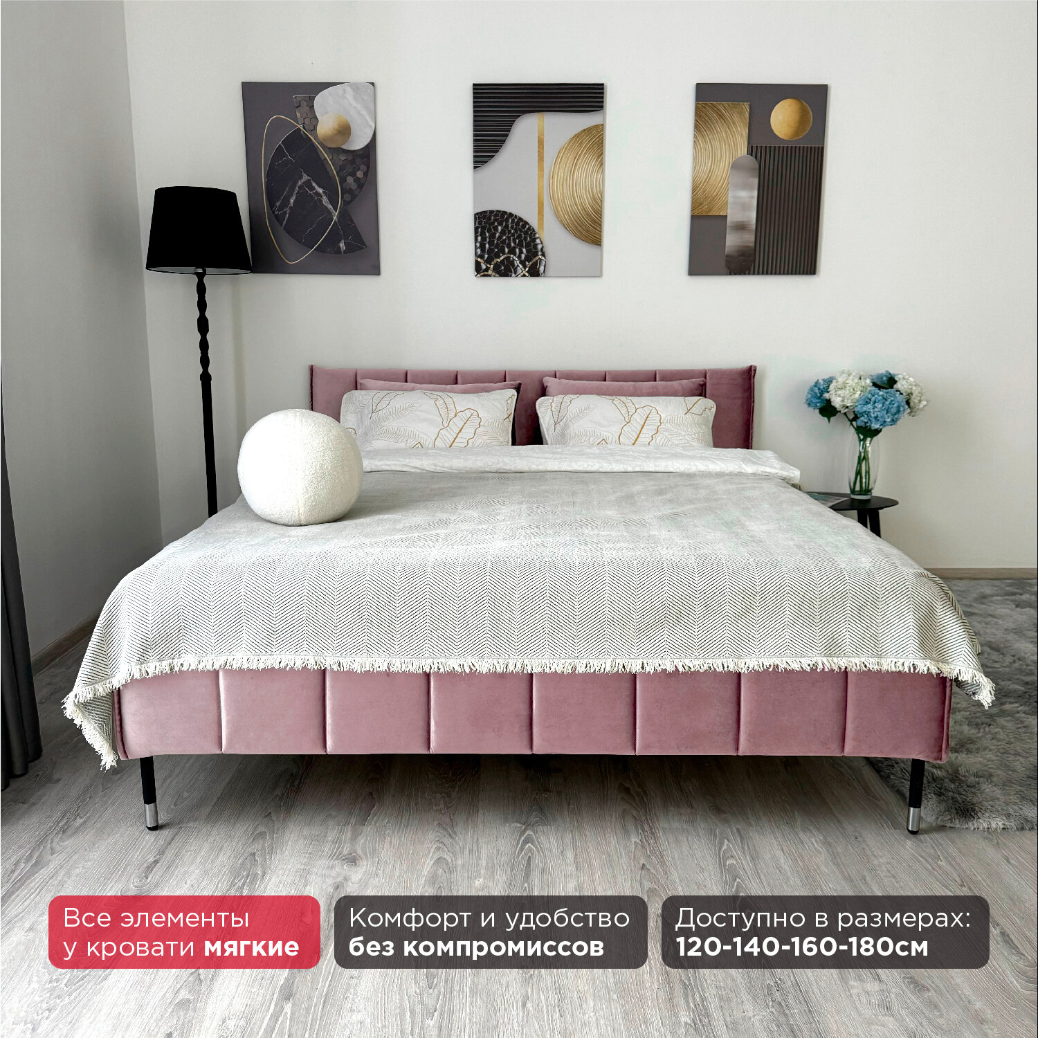 Кровать Redsofa Стелла золотой Шайн / ножки хром 140х200 с ортопедическим основанием 23 240 ₽
