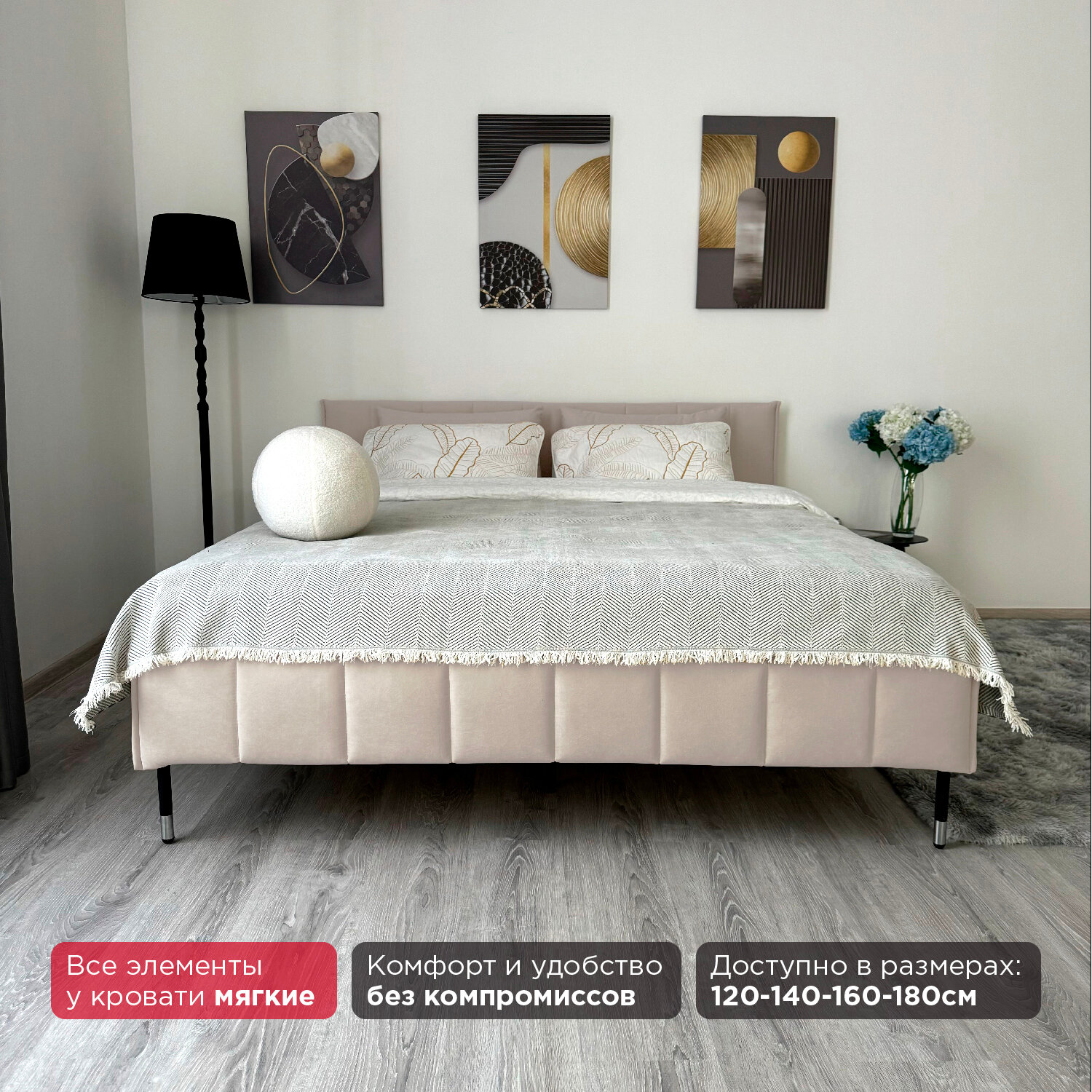 Кровать Redsofa Стелла бежевый Шайн / ножки хром 140х200 с ортопедическим основанием 23 240 ₽