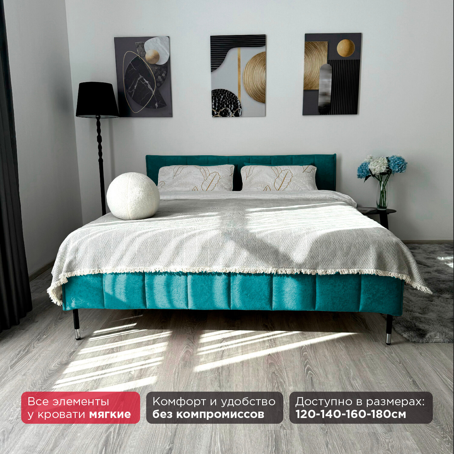 Кровать Redsofa Стелла бирюзовый Teddi / ножки хром 140х200 с ортопедическим основанием 24 170 ₽