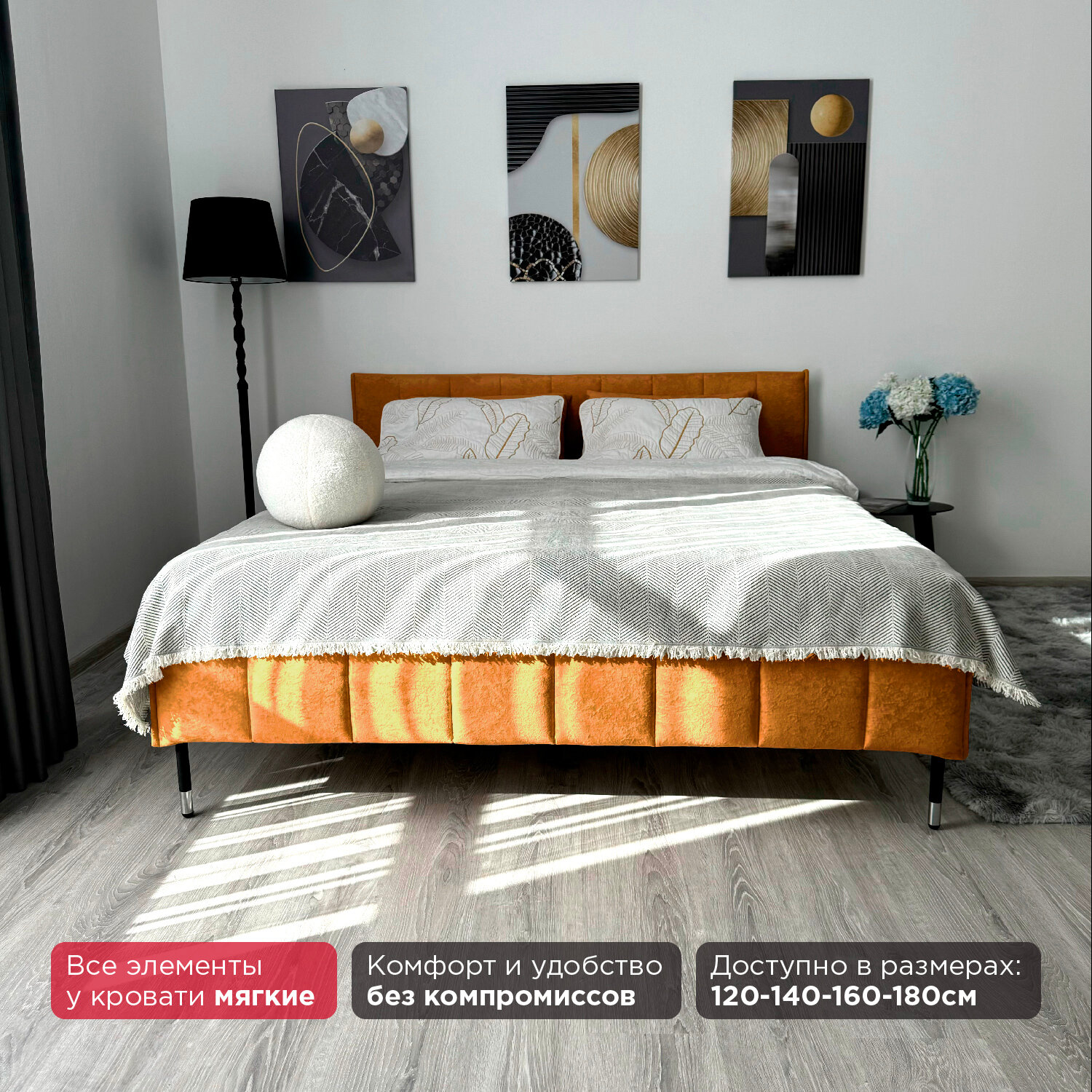 Кровать Redsofa Стелла охра Ocean / ножки хром 140х200 с ортопедическим основанием 25 100 ₽