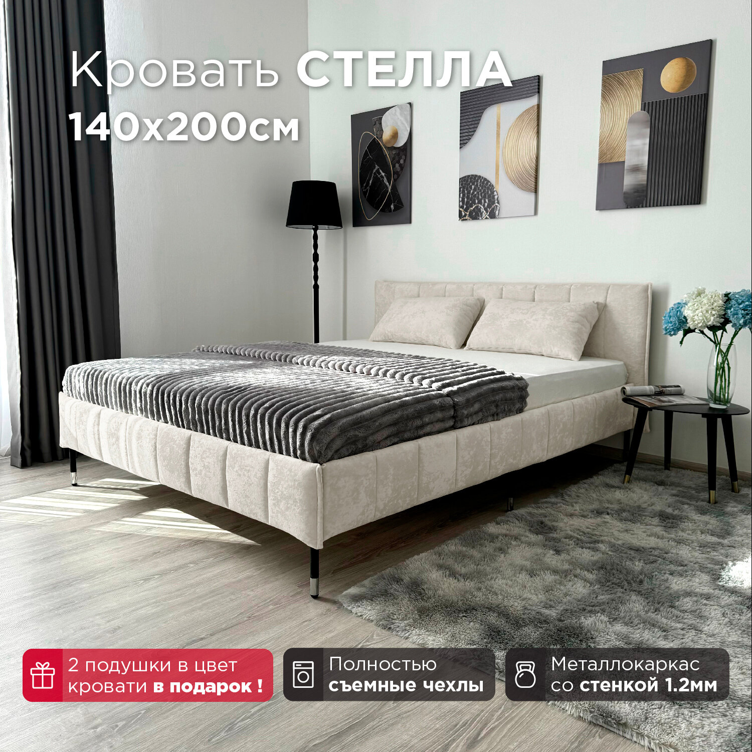 Кровать Redsofa Стелла бежевый Ocean / ножки хром 140х200 с ортопедическим основанием 25 100 ₽
