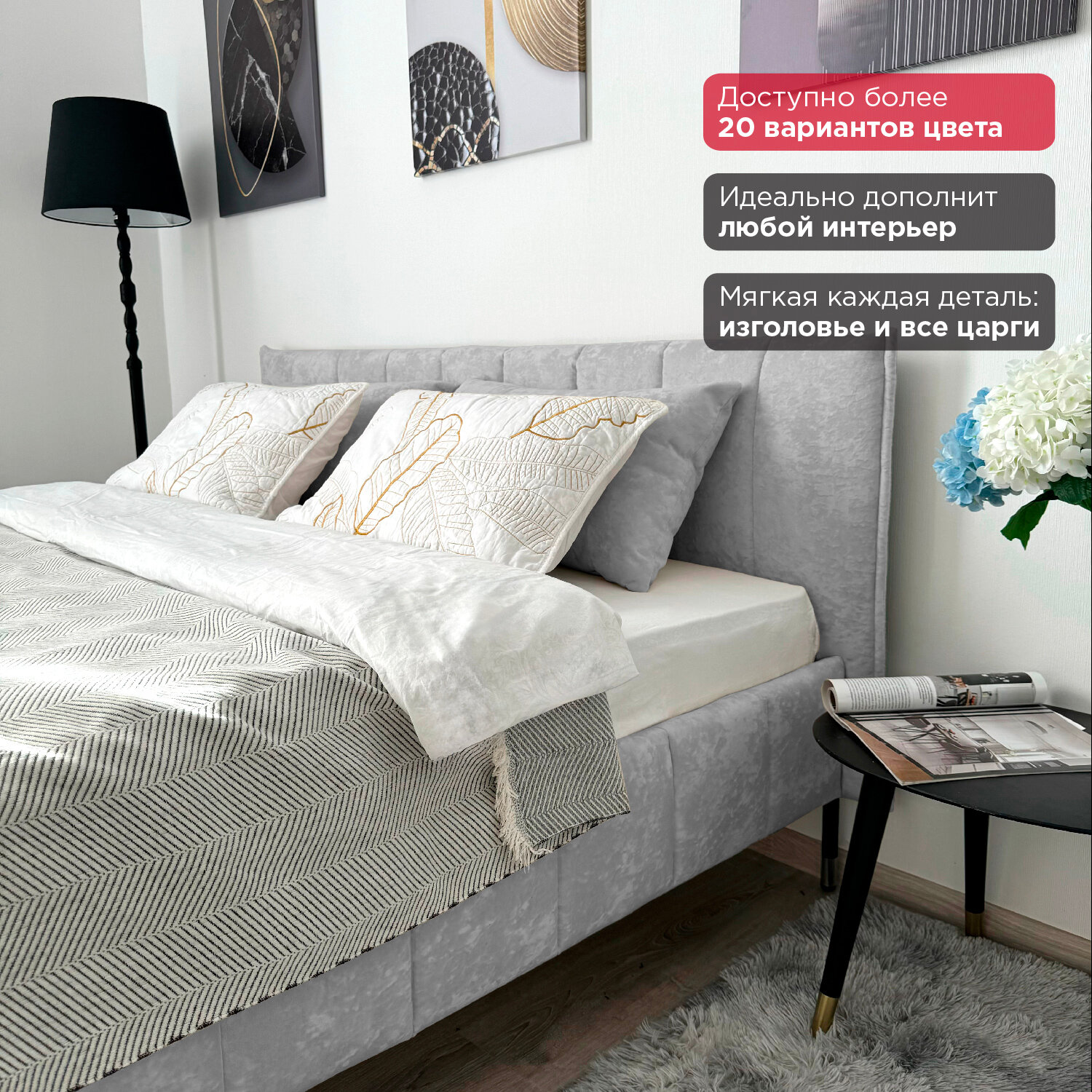 Кровать Redsofa Стелла светло-серый Teddi / ножки хром 160х200 с ортопедическим основанием 23 751 ₽