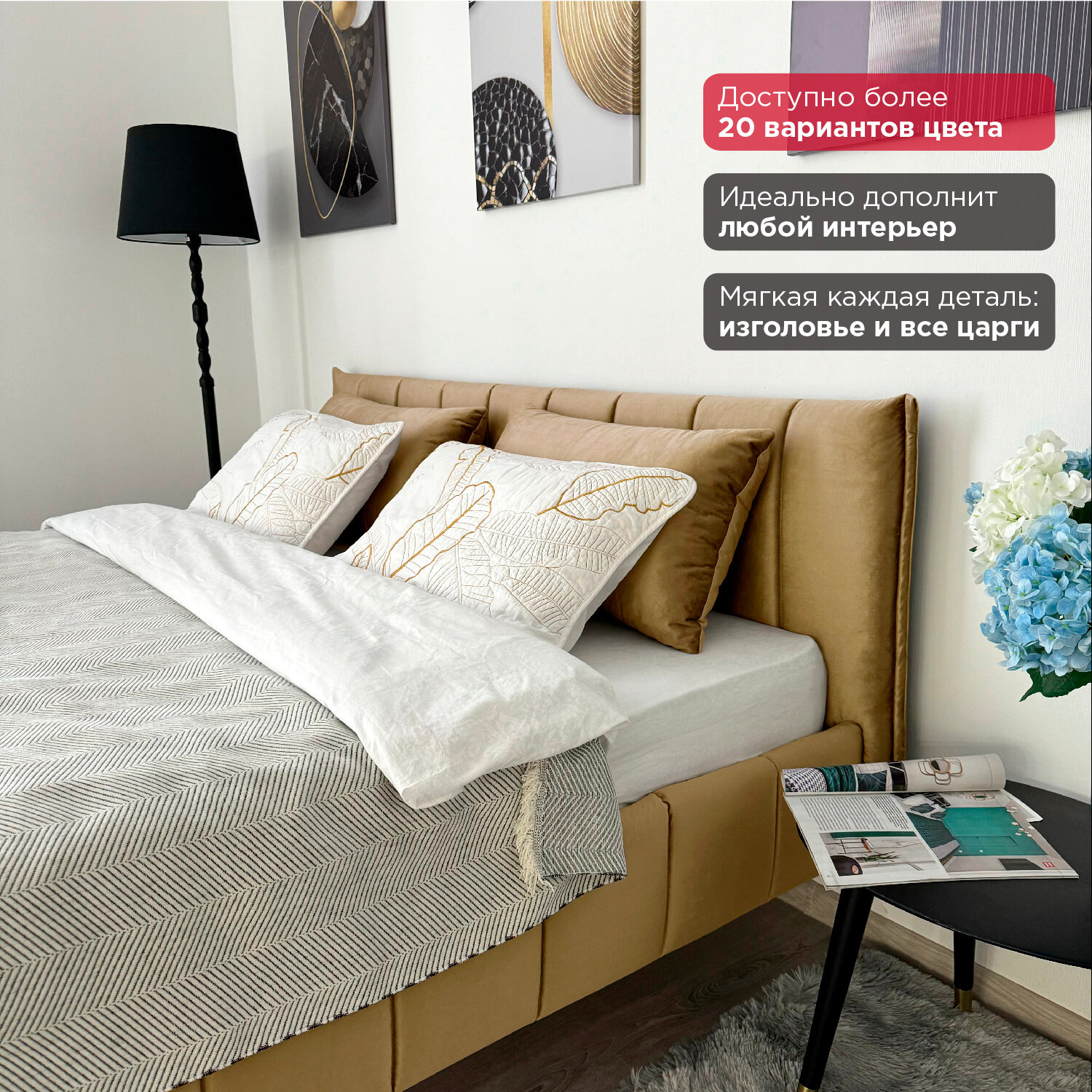 Кровать Redsofa Стелла золотой Шайн / ножки хром 140х200 с ортопедическим основанием 23 240 ₽